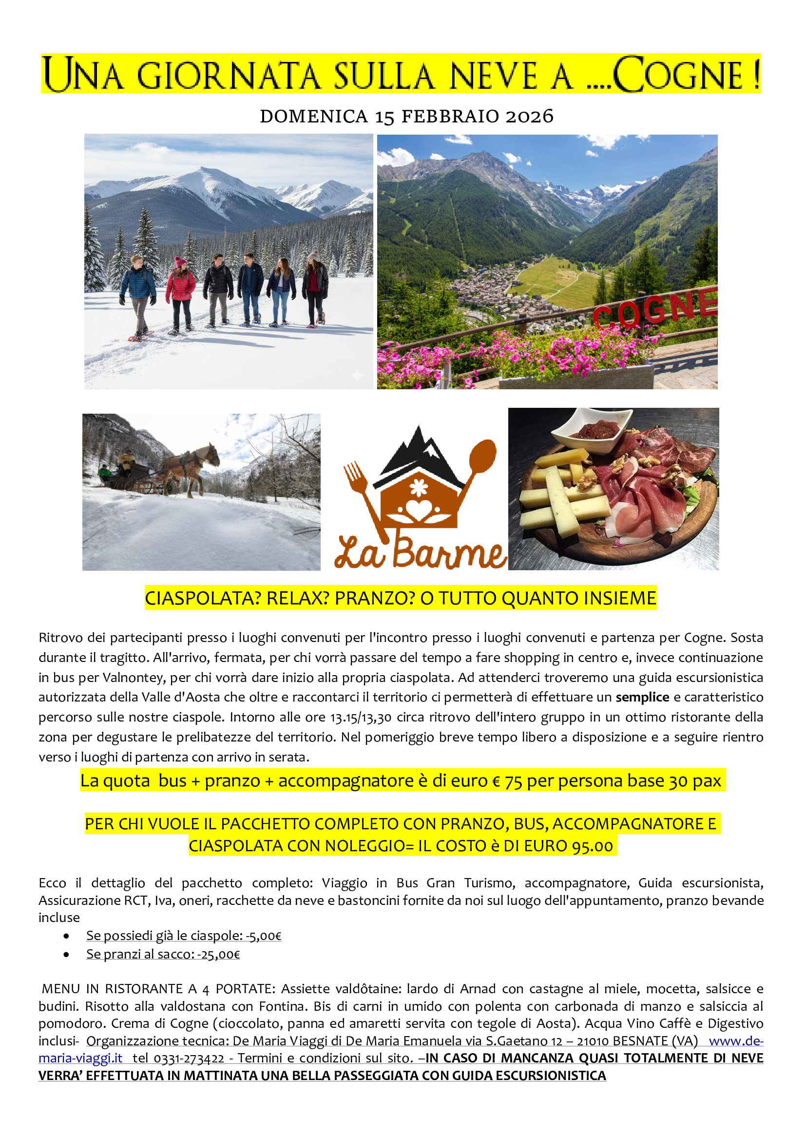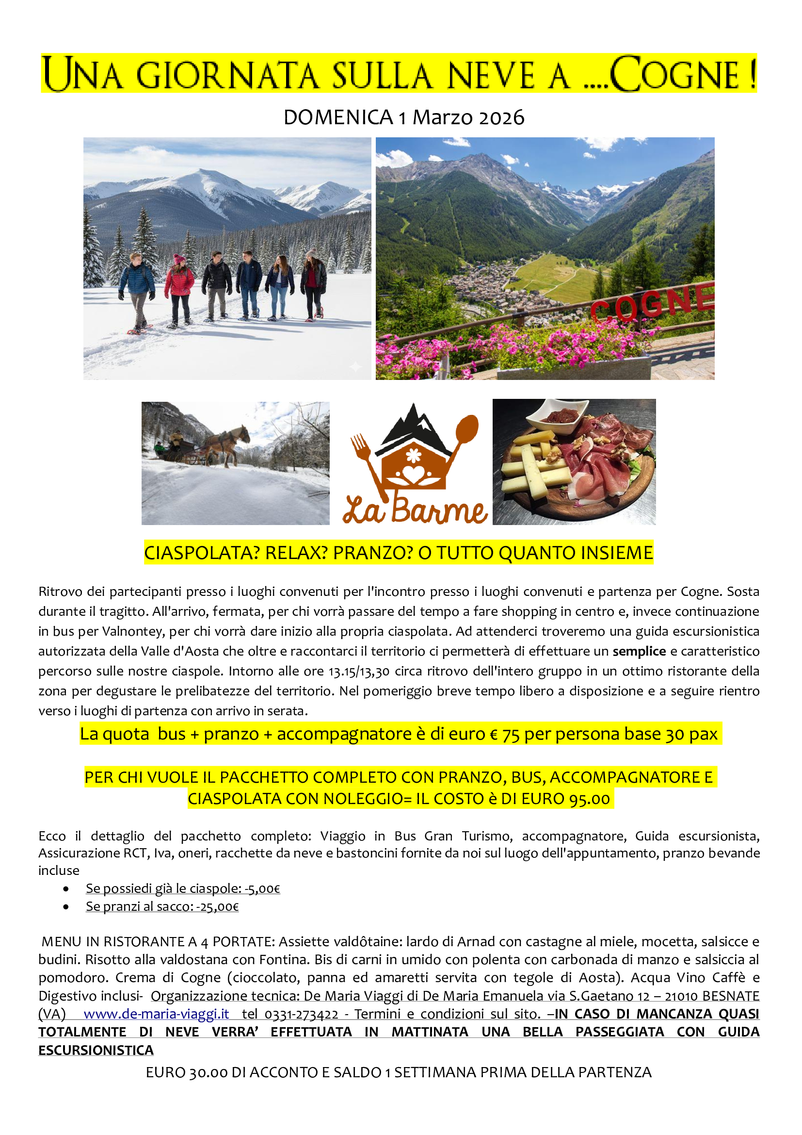 * Domenica 1 Marzo 2026: Giornata sulla neve in motagna a Cogne con pranzo e ciaspolata