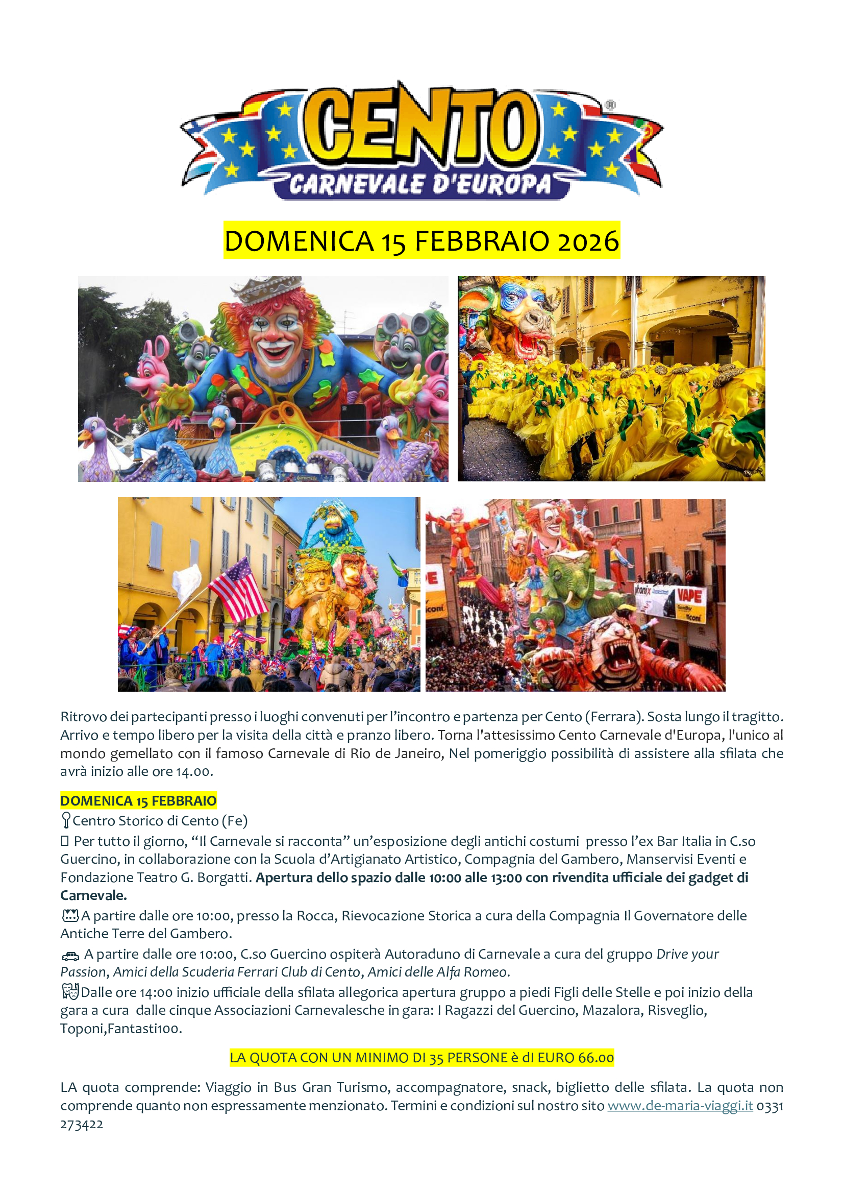 * Domenica 15 FEbbraio 2026 Carnevale di Cento Ferrara